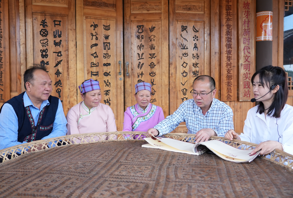 图为调研组了解国家级非遗代表性名录坡芽情歌