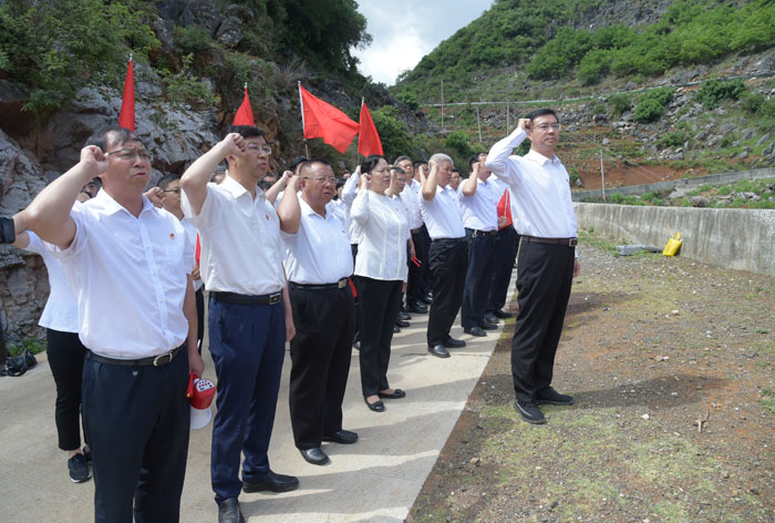 “我志愿加入中国共产党,拥护党的纲领,遵守党的章程,履行党员义务,执行党的决定……”5月14日,州人大常委会机关全体党员干部在位于德厚镇的吴澄洞遗址,面对鲜艳的党旗,高举右手重温入党誓词,深化作为一名共产党员的责任感和使命感。