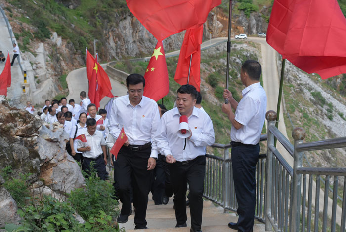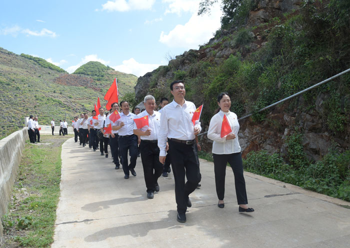 五月的文山,天空湛蓝,绿荫如海,一切都显得那么生机盎然。当天,州人大常委会机关全体党员干部来到文山市德厚镇菲古村小塘子苗族农民武装游击队及吴澄洞遗址,开展以“重温红色历史 弘扬革命精神”为主题的革命传统教育活动,把党史学习教育“课堂”搬到红色教育基地,以鲜活的思政素材、“沉浸式”的教学方式,进一步激发党员和干部职工听党话、感党恩、跟党走的精神动力。