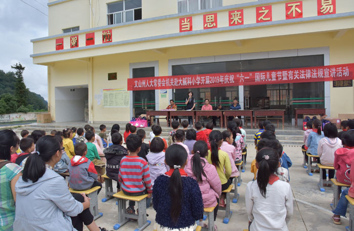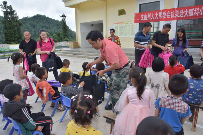 本站讯 为深入贯彻习近平新时代中国特色社会主义思想,深化未成年人思想道德建设,让广大少年儿童共享祖国的荣光、感受生活的美好,增强获得感、幸福感、安全感。“六一”前夕,州人大常委会副秘书长、办公室主任韦和发带领机关妇委会的同志前往机关扶贫点马关县大栗树乡大腻科小学开展系列活动,与孩子们共同庆祝2019年“六一”国际儿童节。