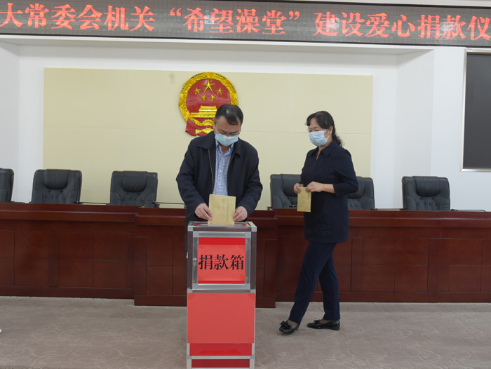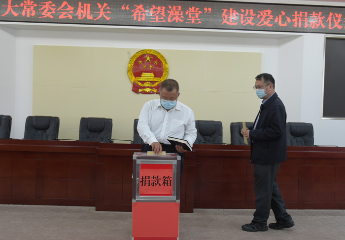 为积极响应州委州政府加大“希望澡堂”建设力度的倡议,4月22日下午,州人大常委会机关举行捐款仪式,州人大常委会主任王毅以委托他人代捐的形式带头开展“希望澡堂”爱心捐款活动,机关全体干部职工迅速行动,踊跃为“希望澡堂”建设捐款。据统计,此次捐款活动共91名干部职工参加,捐款总计40800元。