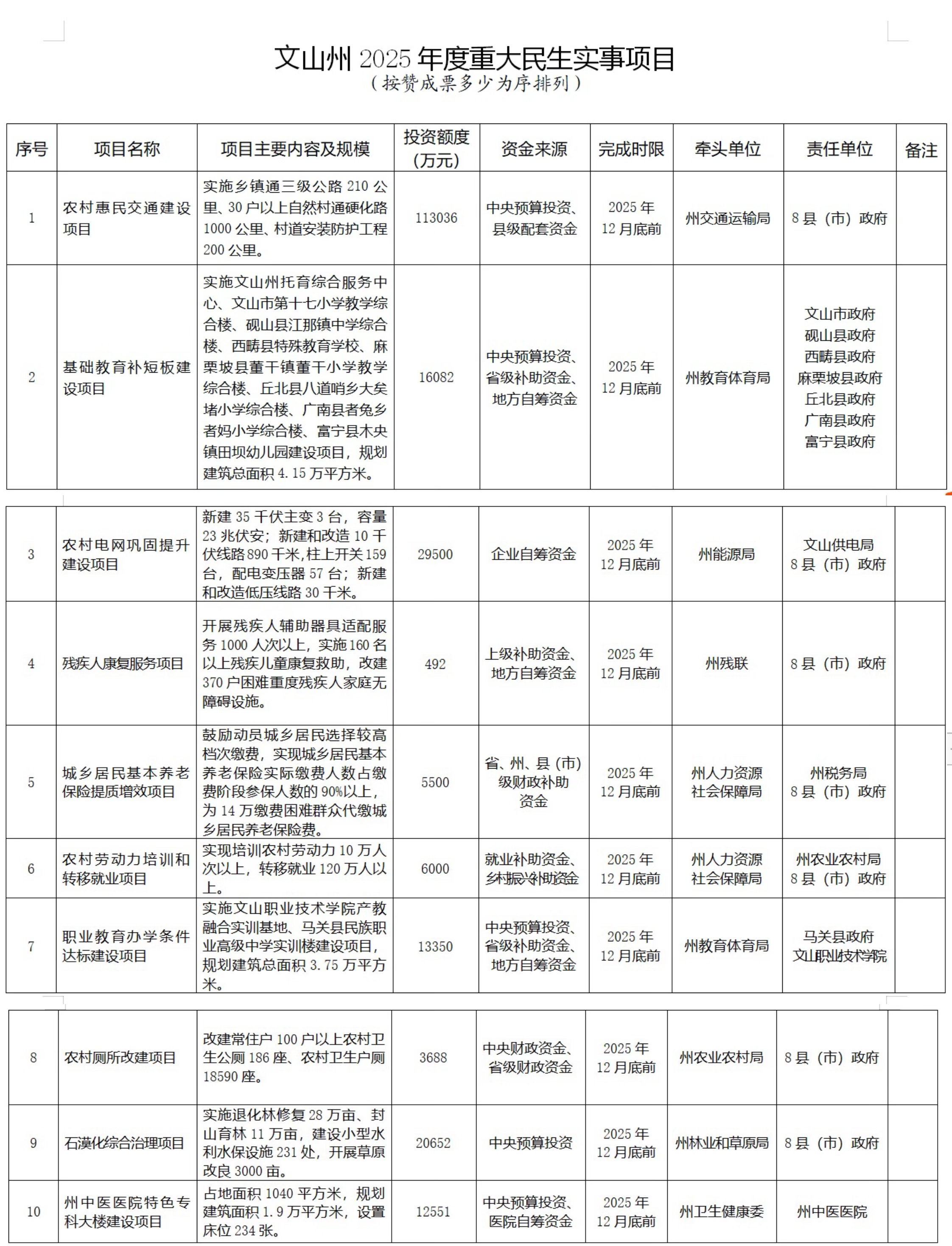 文山壮族苗族自治州第十五届人民代表大会第五次会议票决出2025年度10件重大民生实事项目。