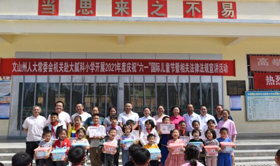 6月1日上午,州人大常委会机关与挂钩扶贫点马关县大栗树乡大腻科小学联合开展“六一”儿童节系列活动。州人大常委会办公室副主任马天梅、州人大常委会教工委副主任、机关妇委会主任汪玲参加了活动。