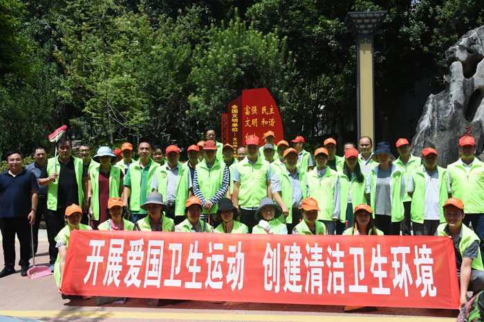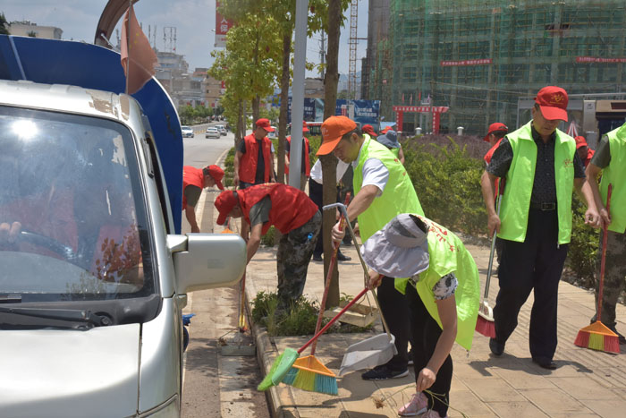 本站讯   7月31日中午,在州人大常委会主任徐昌碧带领下,州和文山市人大常委会志愿者到文山市文东路开展爱国卫生大扫除“众参与”活动。