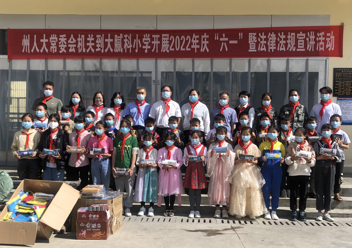 6月1日,州人大常委会机关与挂钩的马关县大栗树乡大腻科小学联合开展“六一”儿童节系列活动,为孩子们送上节日礼物和祝福。