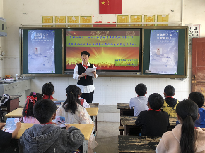 二是开展相关法律法规宣讲。在播放“学习新思想 做好接班人”主题活动系列之“习爷爷的嘱托”视频后,州人大常委会法工委副主任蔡晓玉就《家庭教育促进法》的立法目的、家庭责任及如何正确实施家庭教育等方面进行了详细解读,引导广大家长科学育儿、依法带娃、用爱陪伴孩子成长,向内激发孩子潜能,向外拓展孩子无限可能性;通过知识竞赛,让孩子们知道家庭教育的重要性,并从中更加主动乐于接受家长的教育,在快乐中茁壮成长。